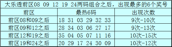 前区两码08和09和之后弘扬最热的6个号码为:18、31、03、29、32、33;