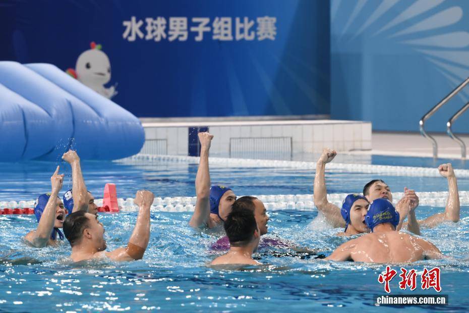 10月27日晚,在广东广州举行的第十五届宇宙畅通会水球须眉组比赛金牌赛中,广东队以16比9投降上海队,赢得金牌。图为广东队庆祝比赛告捷。