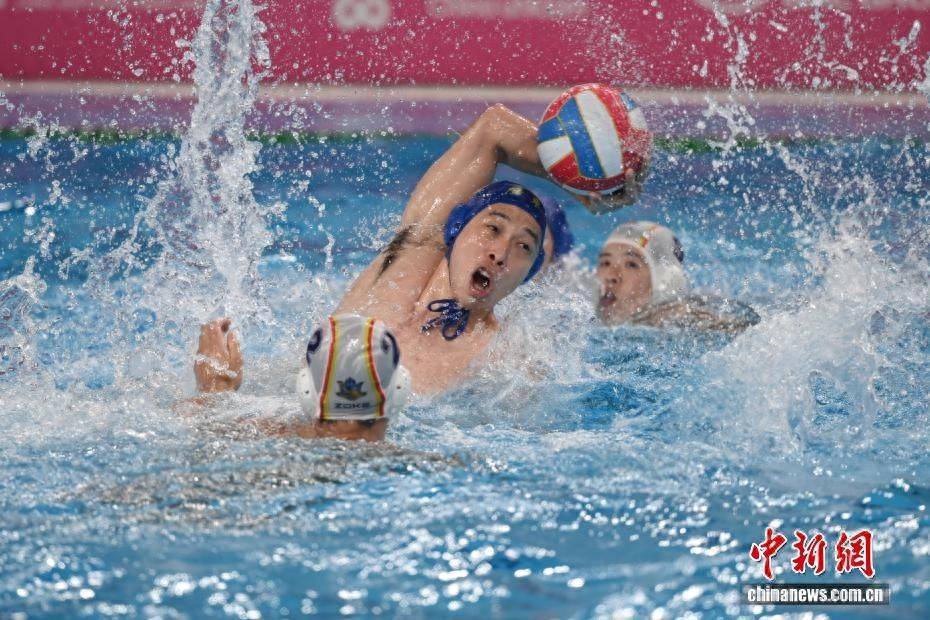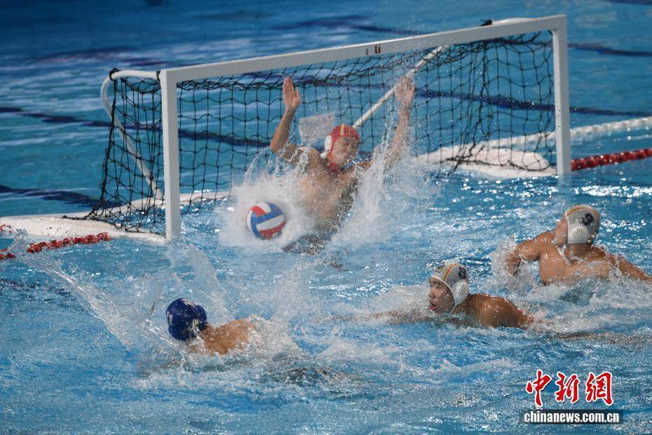 10月27日晚,在广东广州举行的第十五届宇宙畅通会水球须眉组比赛金牌赛中,广东队以16比9投降上海队,赢得金牌。图为上海队11号畅通员蔡宇浩(白帽)在比赛中蹙迫。