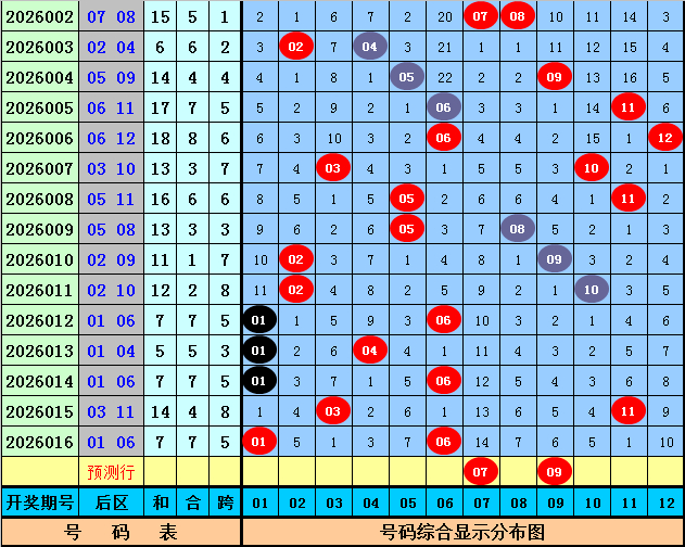 后区杀号参考:02 04 05 10 12