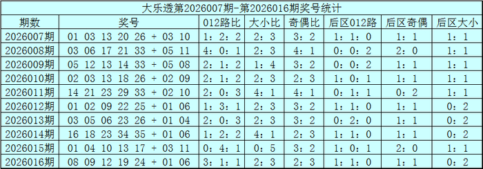 赵研大乐透第2026017期奖号012路分析: